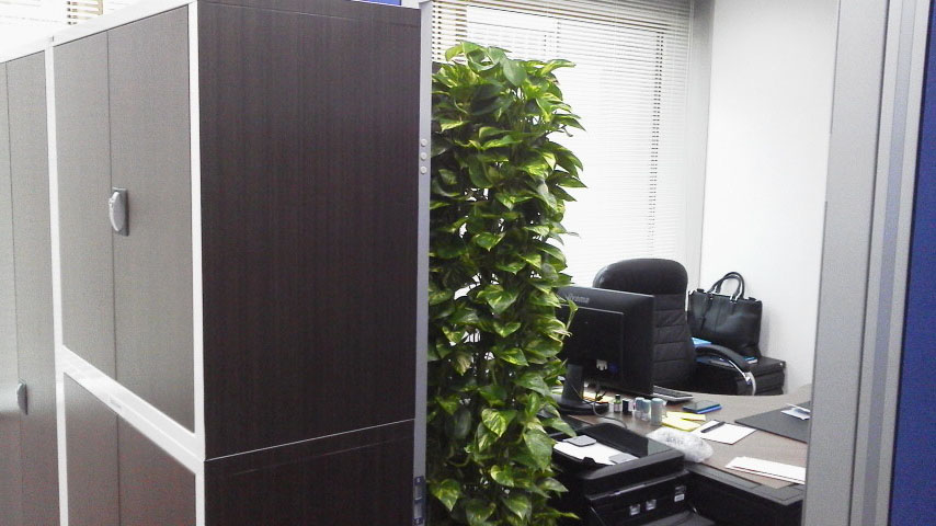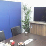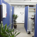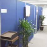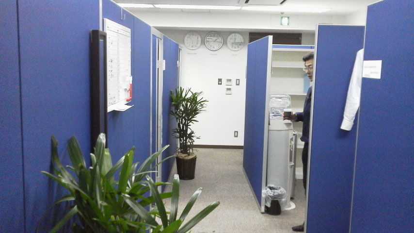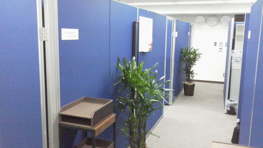 ローパーティション施工 パネルにて各ブース分け 執務室、会議室、役員室、受付 ビジネスフォン、LAN構築工事・OA電源工事・カラー複合機導入 マネージャールーム・執務室・ミーティングルーム施工